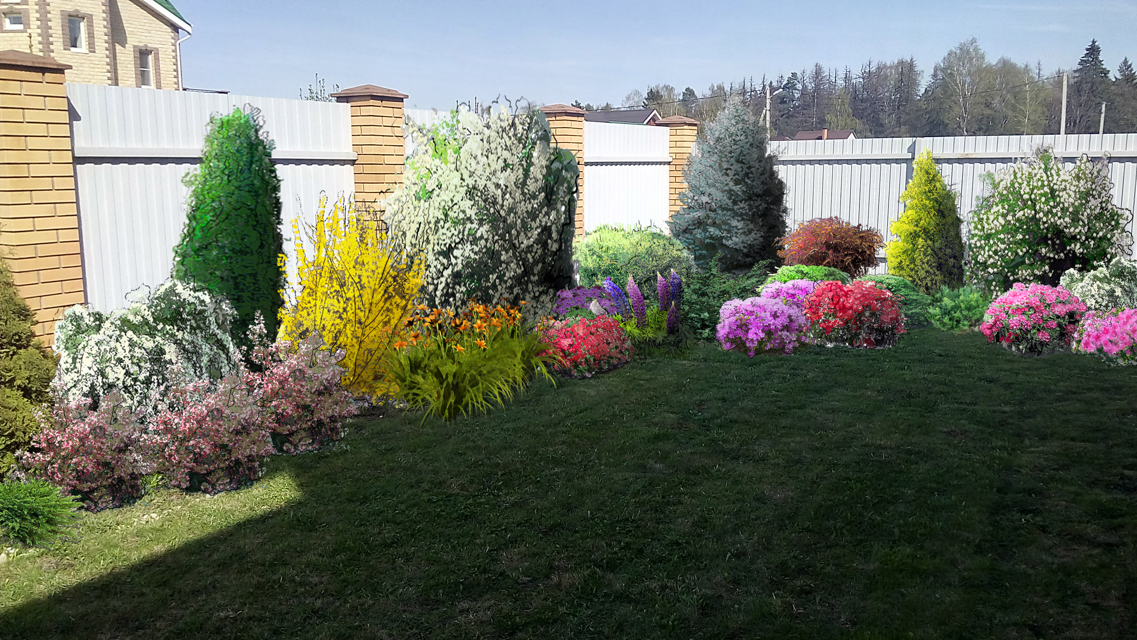 Приступая к выбору зеленых насаждений для Вашего участка, наши дизайнеры учитывают особенности их роста. Вы получите максимальную информацию о том, как будет выглядеть сад спустя 5-6 лет, и какие предусматриваются меры по уходу за ним. Однако оформление цветников и клумб – это не только фантазия художника, но и строгий математический расчет, ведь речь идет о живом и подчас очень прихотливом художественном «материале».