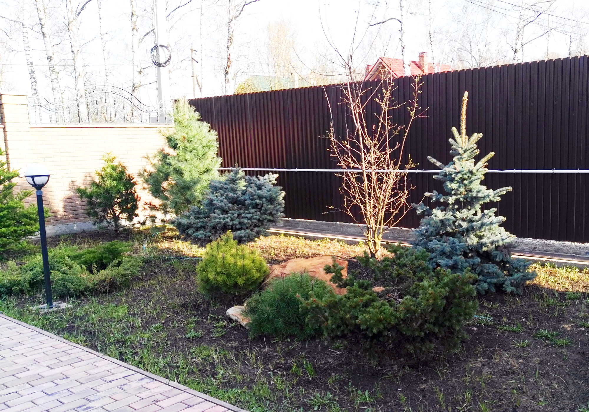 При выборе места для посадки хвойных композиций на участке мы берем во внимание конфигурацию территории, пожелания клиента, а также биологические особенности растений. Ведь среди них есть как светолюбивые, так и теневыносливые, например пихта. Кроме того, внимательно разграничиваем соседство вечнозеленых и лиственных растений, поскольку опавшая листва станет очагом заболеваний ели или сосны. Дизайнер внимательно изучает приусадебный участок и рекомендует оптимальное размещение растений этого вида в условиях вашего ландшафта.