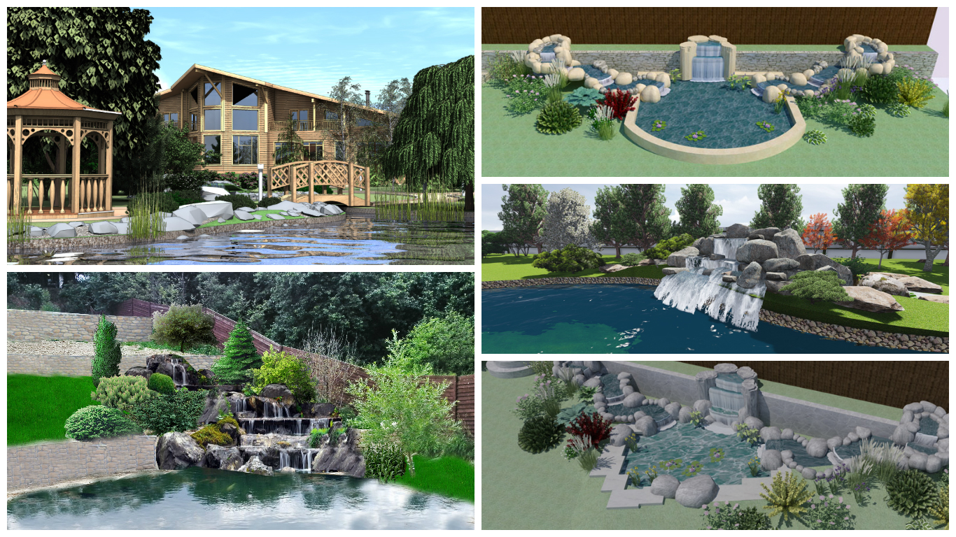 Практика специалистов компании ГринМич показывает, что заказчиков, желающих устроить живописный сад без декоративного водоема, сегодня практически нет. Даже бюджетные варианты устройства ландшафта подразумевают маленький пруд с нарядным бордюрчиком из камней и растений. Водопады в саду оживляют его в еще большей степени. В этом случае форма, глубина и размер водоема, а также расположение (на возвышении либо в углублении, в укромном уголке либо в зоне пати) зависит от площади участка и стиля – пейзажного либо регулярного, – в котором устроен сад.