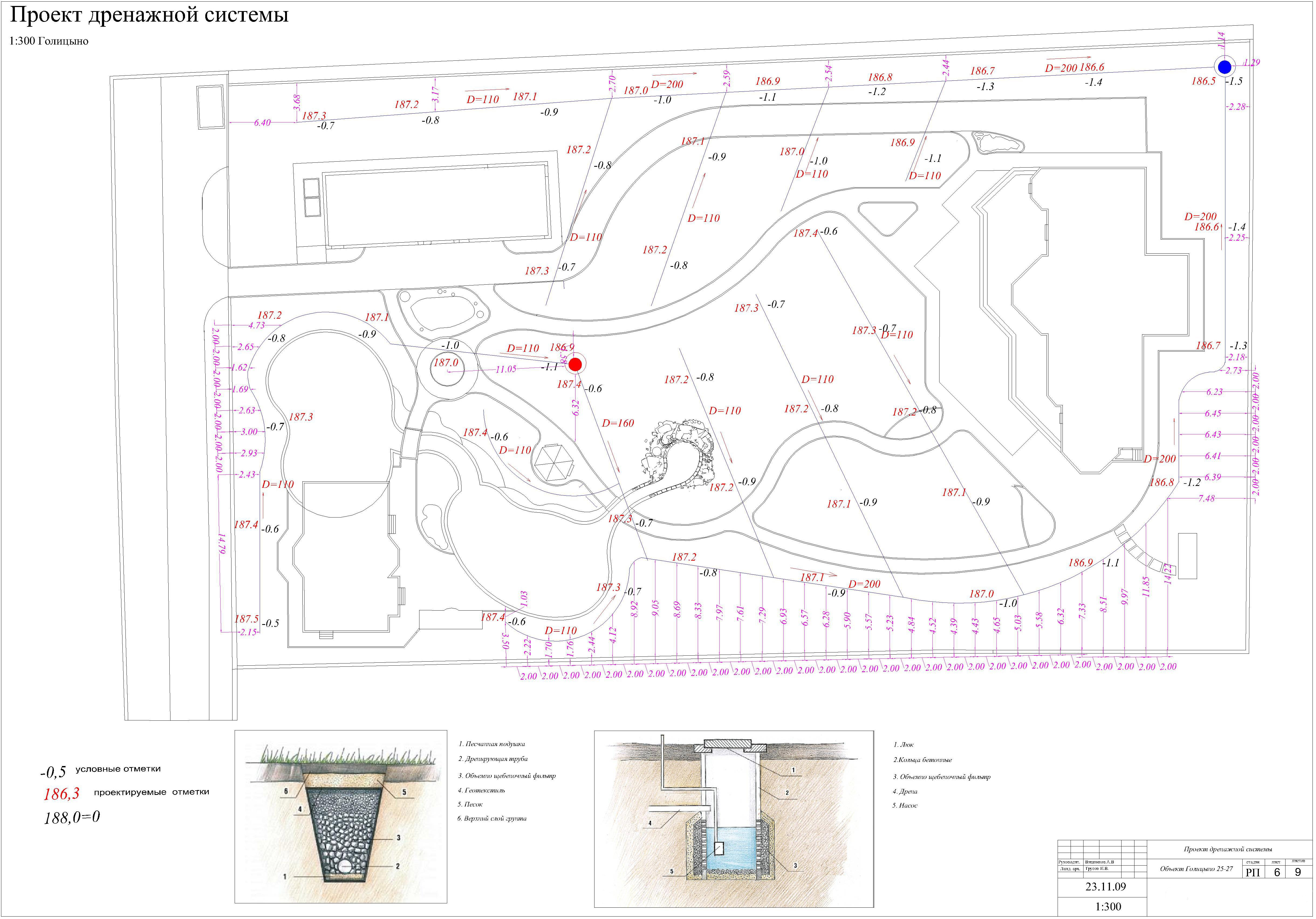 Устройство дренажной системы - сложное и ответственное мероприятие, поручать которое можно исключительно специалистам. Оно требует тщательной предпроектной подготовки с определением глубины подпочвенных вод, геодезической съемкой участка. Проектирование и последующее строительство дренажной системы также должно проводиться профессиональными инженерами, которые учтут все рельефно-климатические нюансы участка, выявят «слабые» зоны, которым следует уделить особенное внимание.