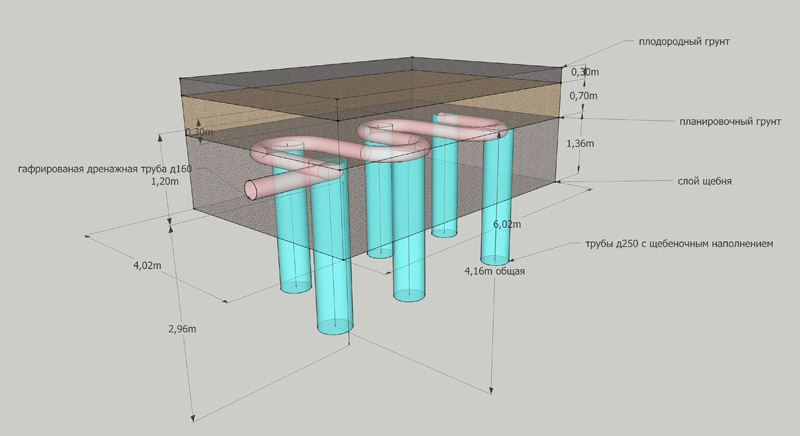 - Дренажная система для отвода грунтовых вод в виде канав, закрытых дренажным материалом: щебнем, битым кирпичом и т.д.;