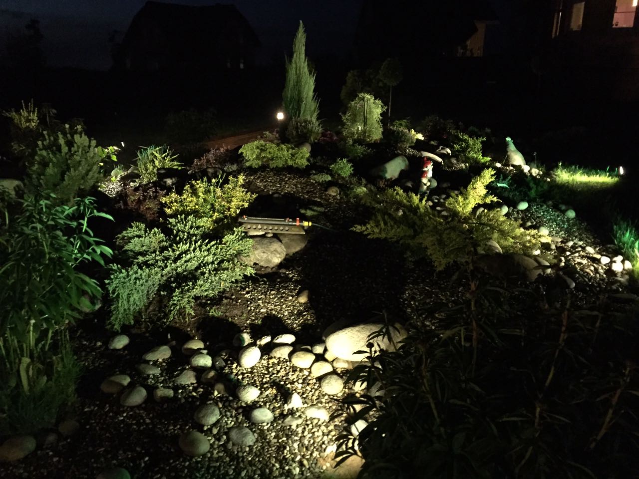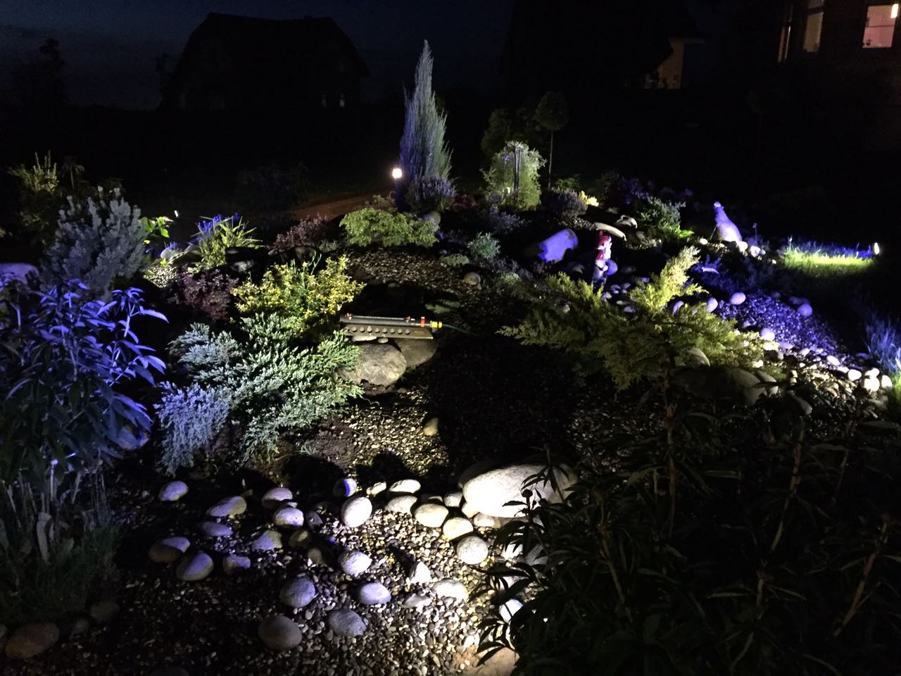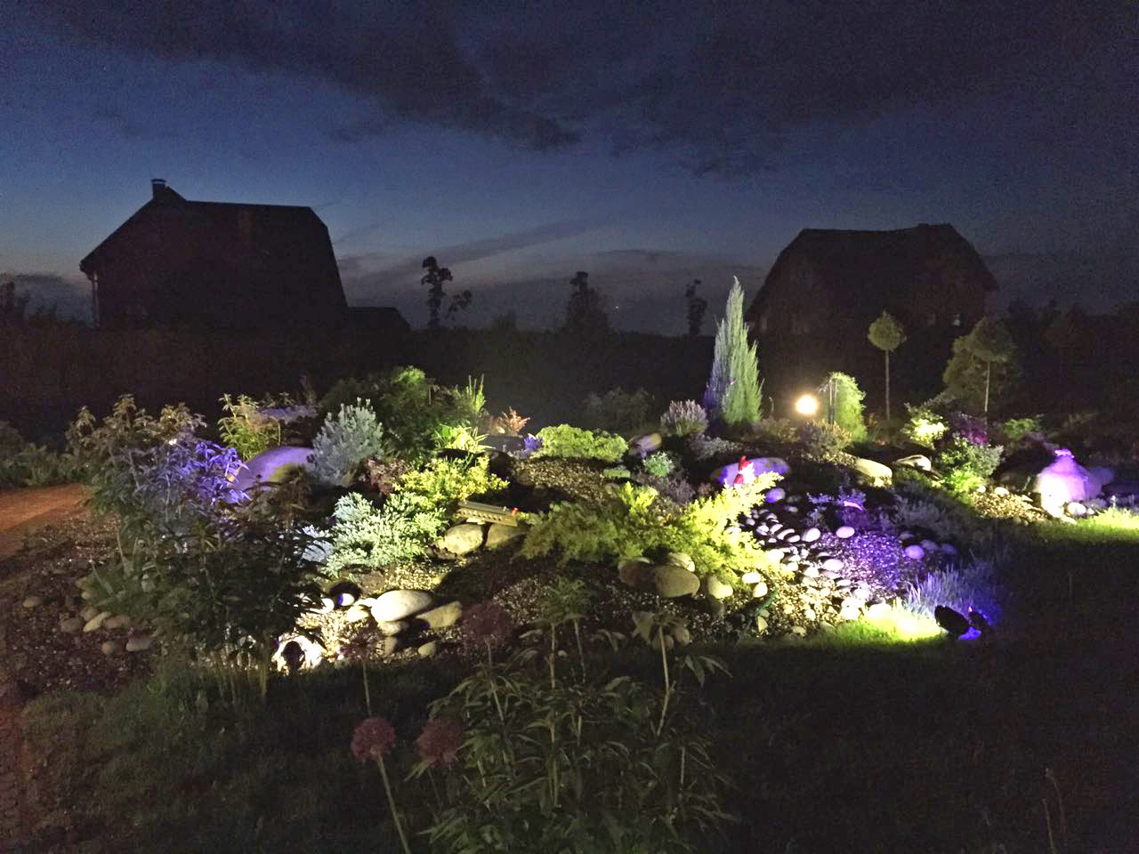 - Монтаж садового освещения. Наиболее ответственная и трудоемкая задача, результатом которой станет красивый в любое время суток сад.