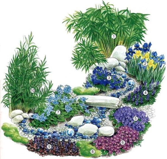 - Сочетание фактур. В готовых ландшафтных композициях часто используют принцип единообразия, при котором сочетаемые элементы имеют одинаковую или похожую фактуру;