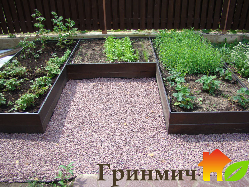 Также еще одни из наших проектов было декоративное оформление участка с помощью гравия. Также строго определенные формы в сочетании с гравийной насыпкой в роле дорожек. Здесь кроме декоративных, по сути бесполезных растений, хозяин участка также высаживает плодовитые виды, что также весьма оригинально смотрится.