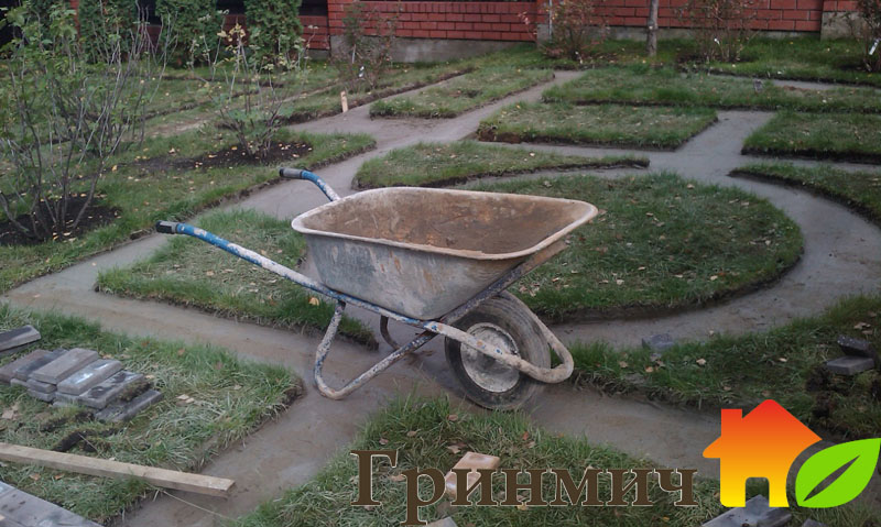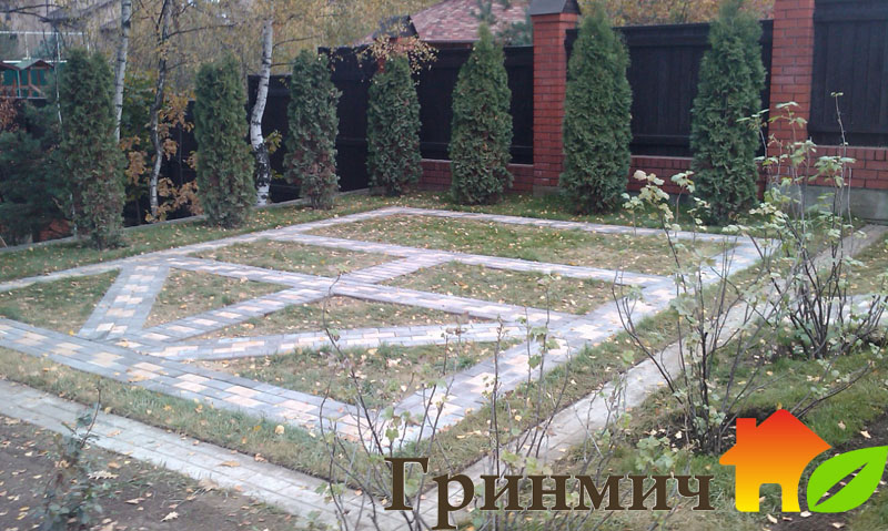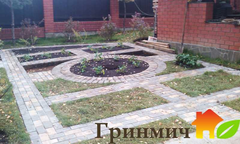 Любое благоустройство участка начинается с подготовки территории. Для этого в соответствии с проектом была нанесена разметка и вырыты траншеи для укладки тротуарной плитки. Следует отметить, что для исключения вероятности прорастания травы меду камнями, дно устилается изолятором, засыпается щебнем, песком и тщательно выравнивается под уровень.