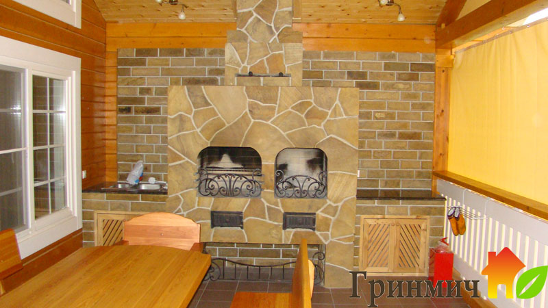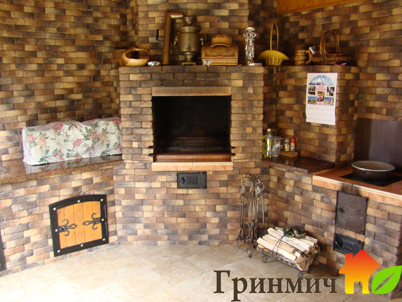 Но наш ассортимент малых форм не ограничивается деревянными изделиями. Мы также делаем декоративные камины и печи, которые также могут выполнять функции средства для приготовления пищи. Для их кладки применяется качественный клинкерный кирпич от лучших производителей, предварительно обожженный в печи, что придает ему непревзойденный внешний вид и прочность. Для декоративной отделки печи мы использовали декоративный камень.