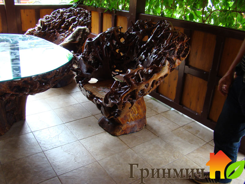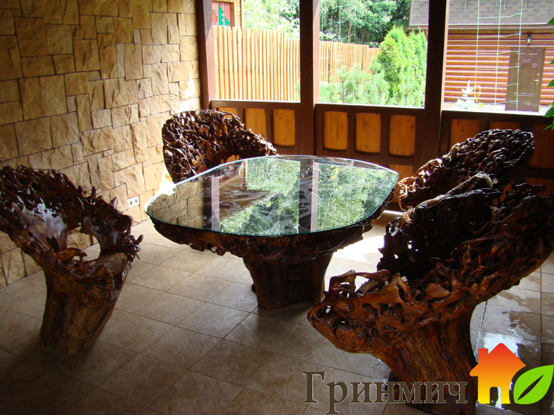 Также к нашим работам следует отнести кресла. Они создают необычайную обстановку в беседке, немного таинственную и одновременно зловещую.