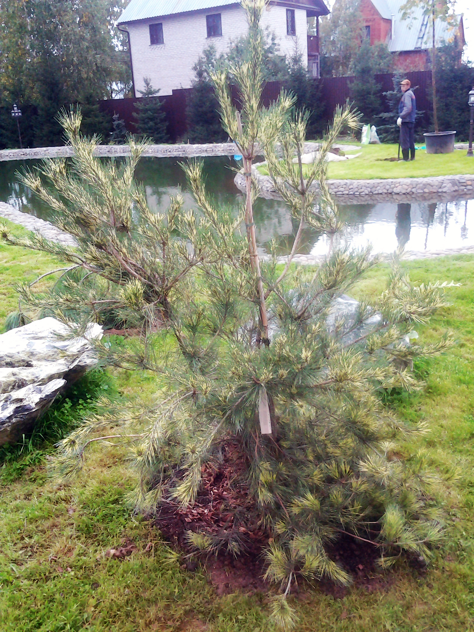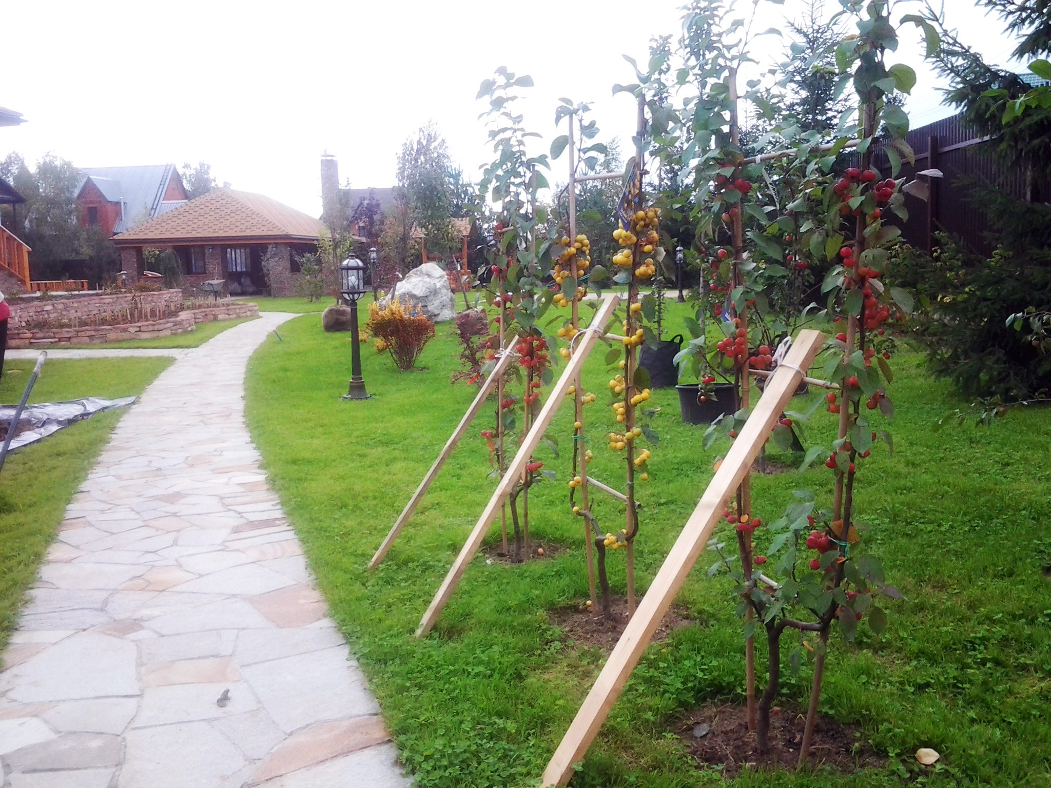 Но кроме пруда здесь есть еще множество красивых моментов. Благоустройство и озеленение. По всей суше обильно рассажен газон и местами имеются декоративные деревья, заполняя пустые пространства. По периметру всего участка можно насчитать несколько десятков настоящих елок.