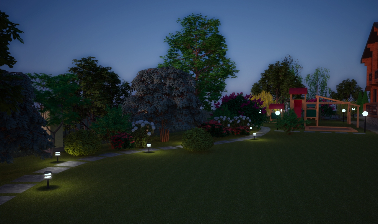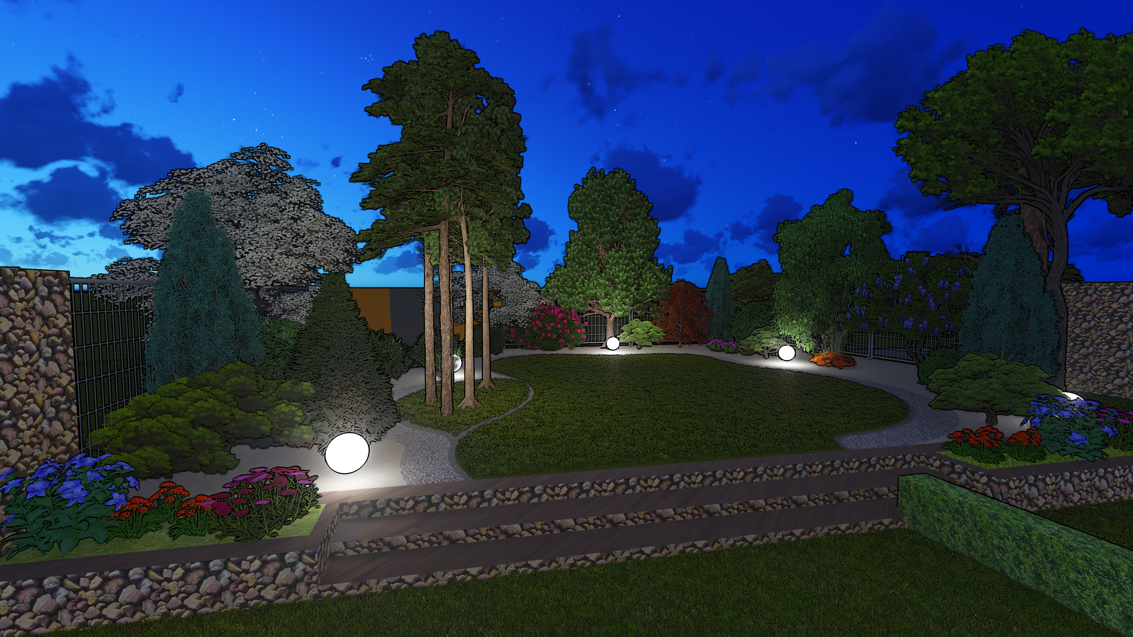 Программа, 3Д визуализация позволяет увидеть ландшафтный дизайн при любом освещении (дневное, ночное, вечернее). За счет того, что можно наблюдать за тем, как растения растут и увеличиваются в размерах, вы можете оценить перспективу развития садово-парковой зоны.