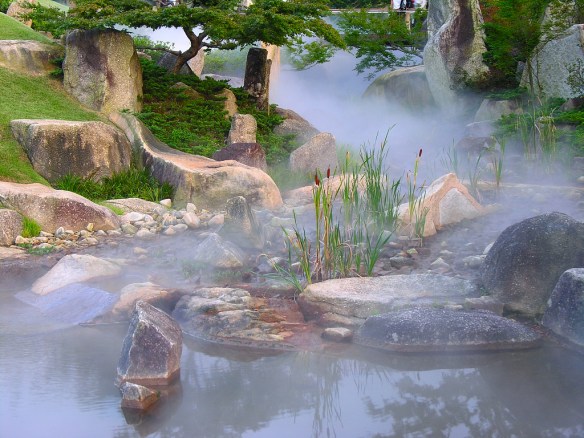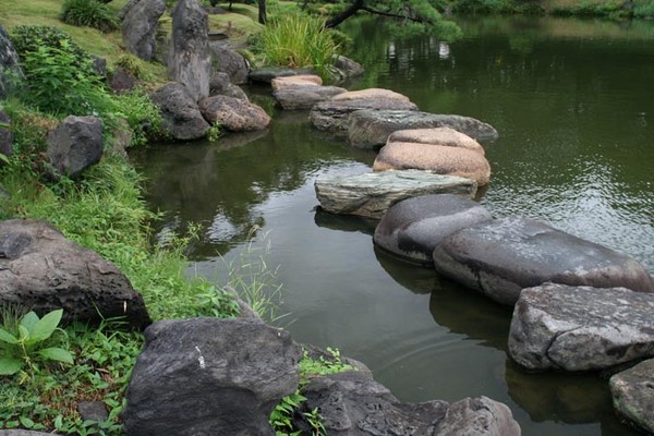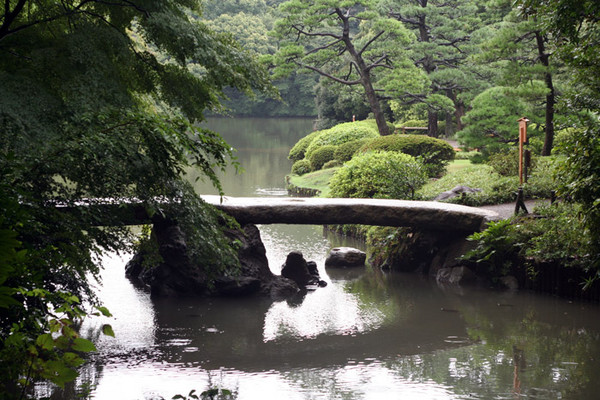 Также японские пейзажи характерны множеством узких речушек, через которые распростираются мосты и переходы. Притом они являются доневообразения крутыми. Это, скорее всего связано с геологическим особенностями японского ландшафта. Как правило, в низинах, где много речушек, нет возвышенностей, на которых моно было бы построить мост. Поэтому его приходиться делать крутым, чтобы по реке еще могли проплывать суда.