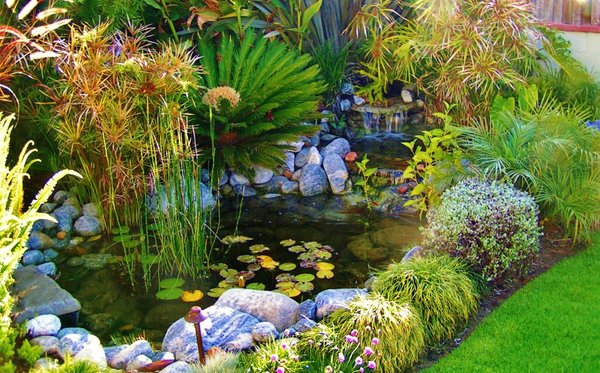 Водный сад — это причудливо скомпонованные разноуровневые водоемы, рукодельные пруды, озера и бассейны. Главная роль в этом ландшафтном шедевре отводится, конечно же, воде. Структурированный ландшафтный дизайн подобного райского уголка требует специальных знаний и огромного опыта, тонкого художественного вкуса, больших затрат и постоянной заботы умелых рук. Техническая реализация проекта водного сада потребует сложных работ по созданию, укреплению и оформлению бассейнов. Но все потраченные усилия компенсируются умиротворенностью и релаксацией от созерцания композиций из ручьев, водопадов, каскадов и фонтанов, водной глади с подводным миром гармонии и согласия, населенным чудесными рыбами и нежными растениями. Подчеркнут неповторимость водного сада композиции из садовых скульптур и природных материалов. Эффектный и волшебный вид, созданный водным пейзажем, играя вечером тенями от элементов сада, подсвеченных при помощи декоративных светильников, подарит незабываемые впечатления.