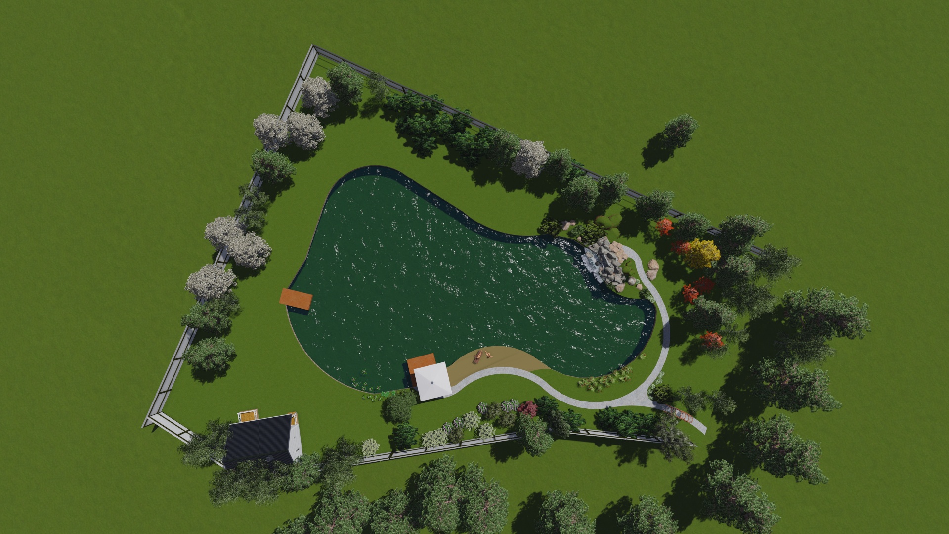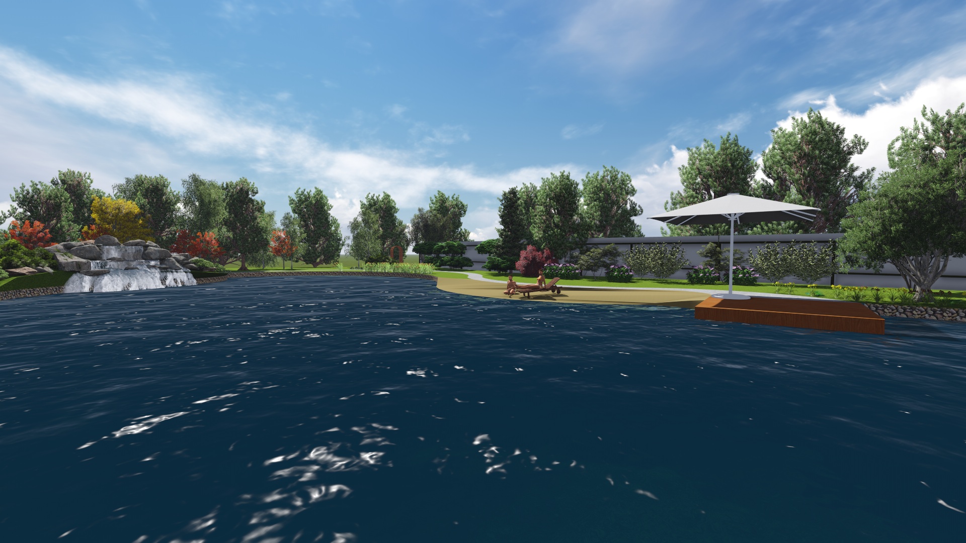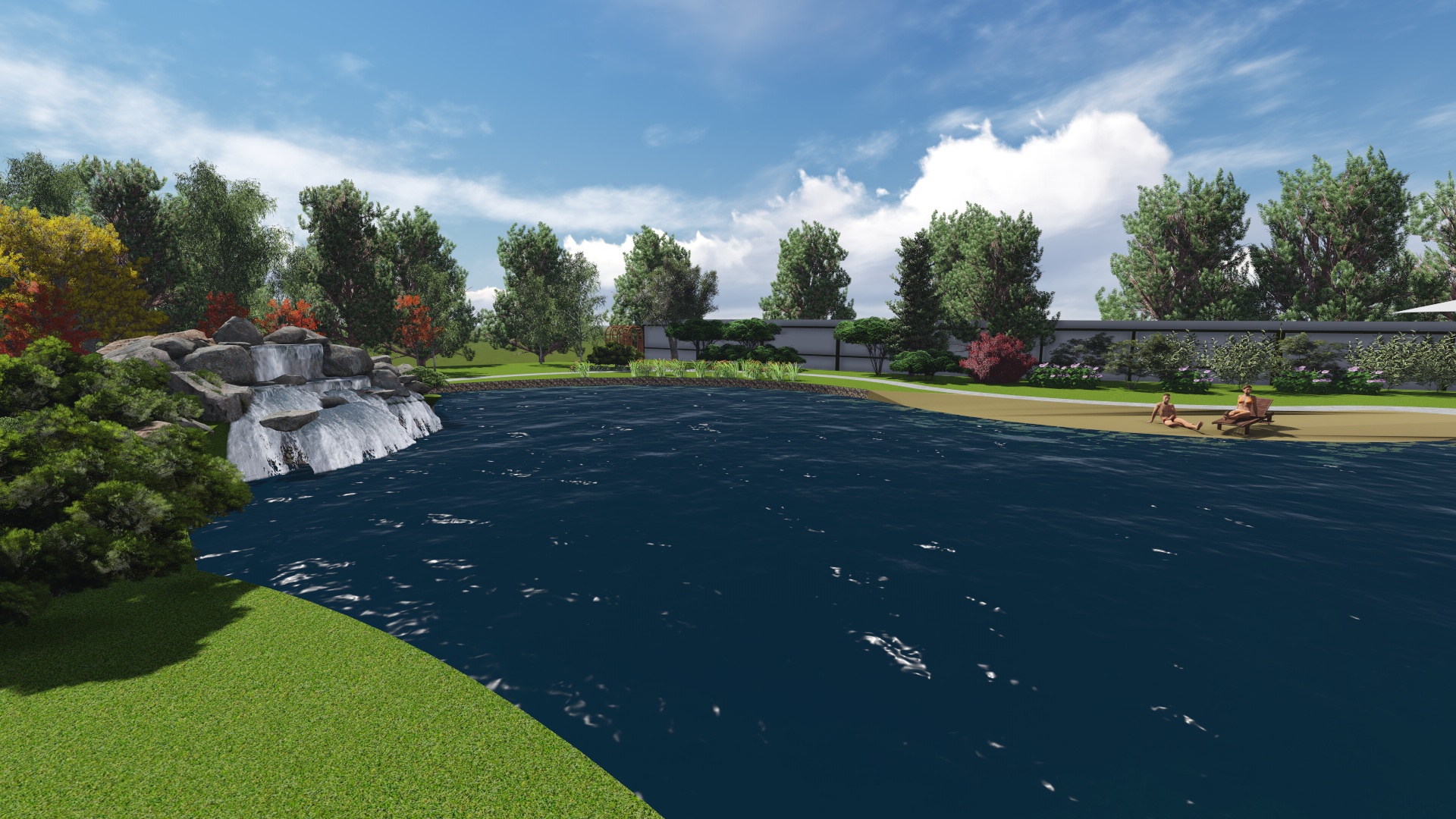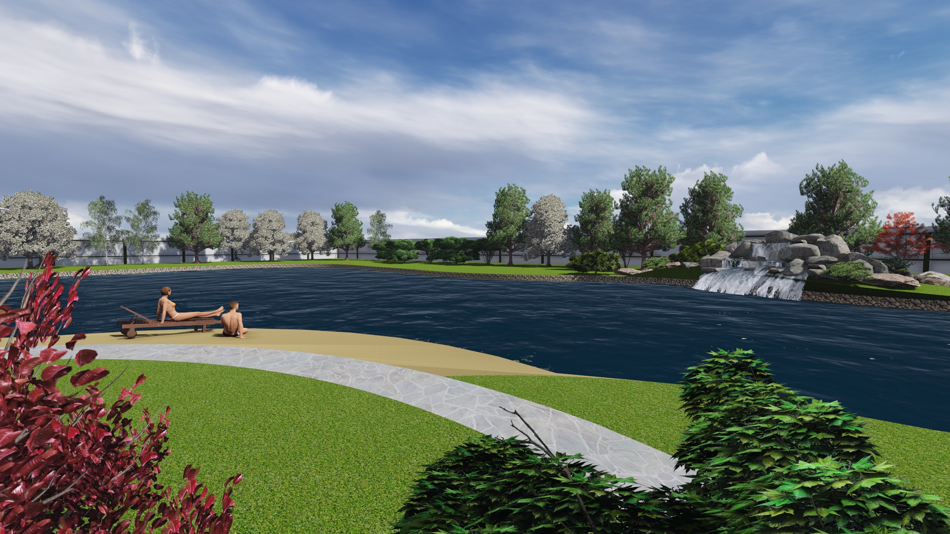 Проект расширения водной зоны с добавлением водопада , пляжной зоны, зоны для ловли рыбы придание водоему более эстетического вида за счет оформления контура пруда и оформления прибрежной зоны.