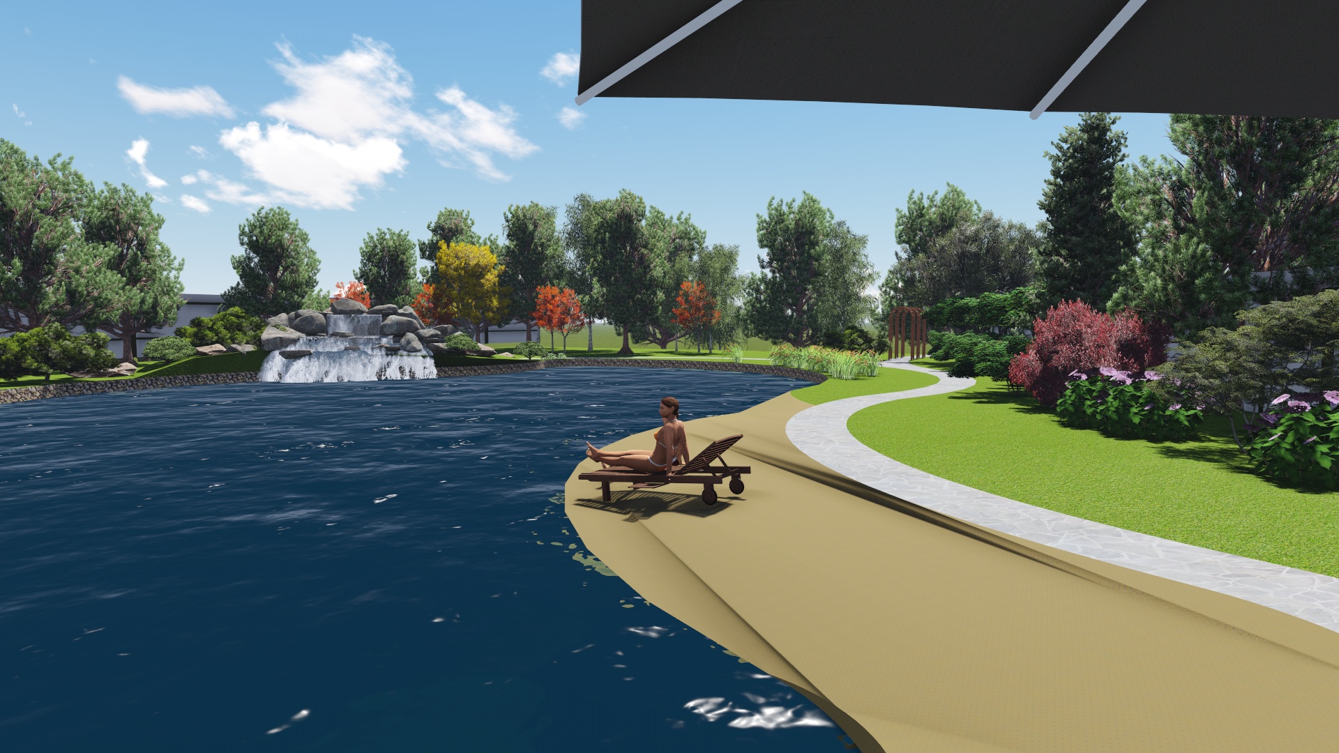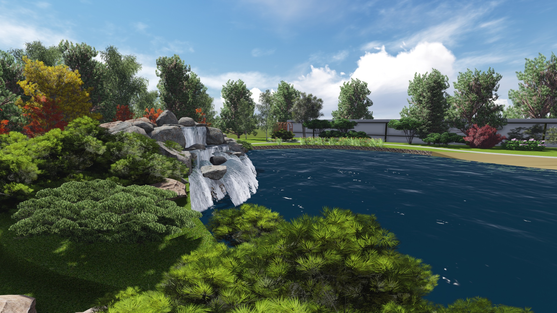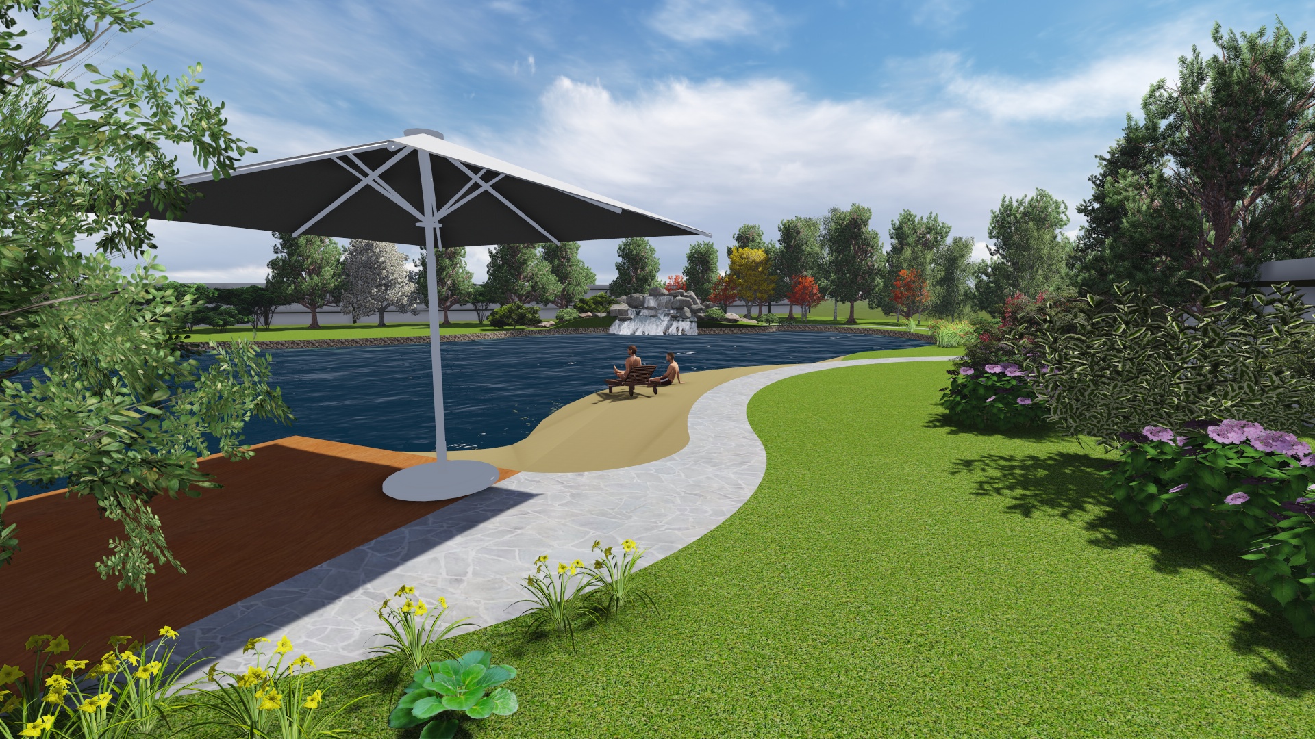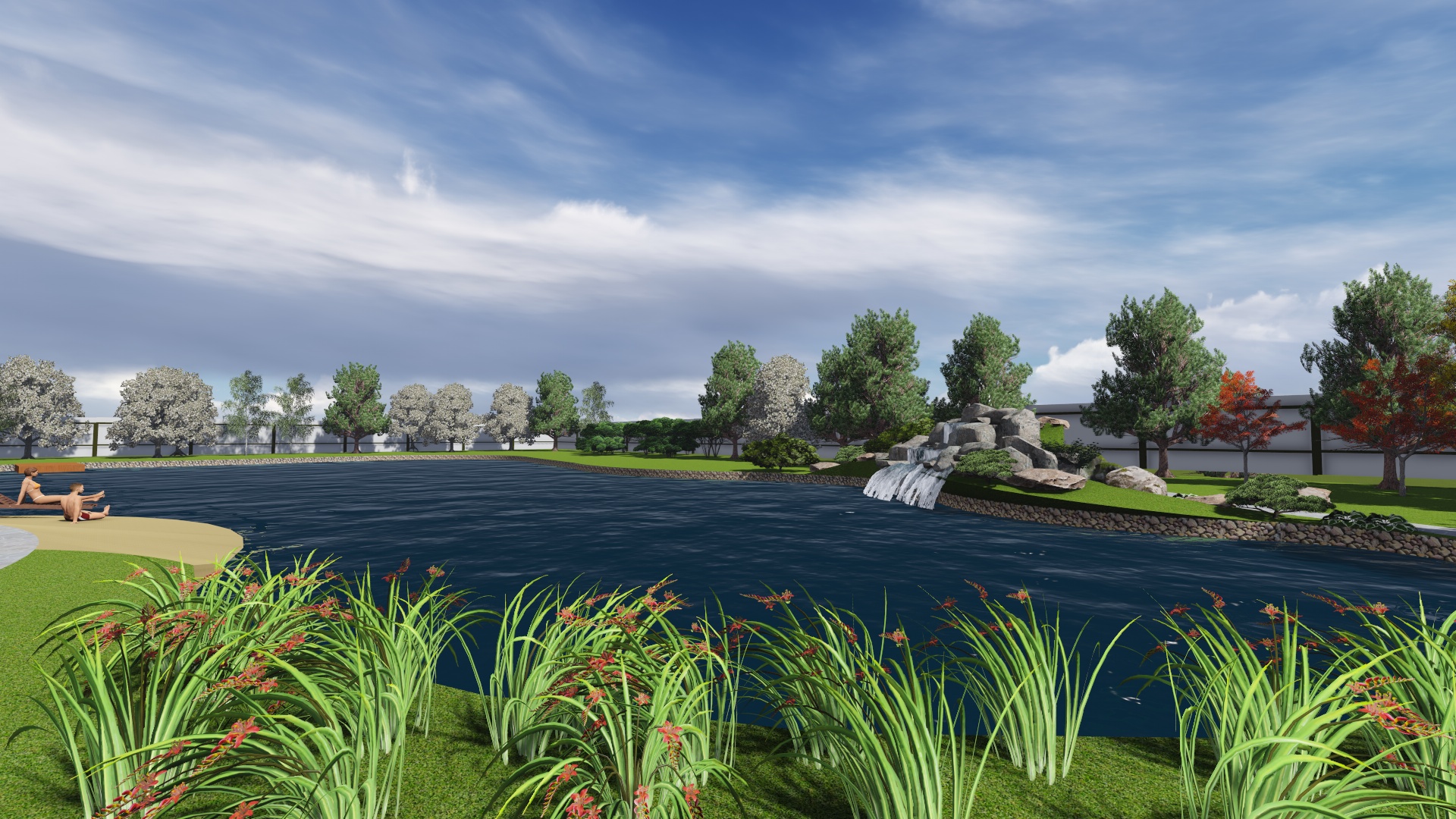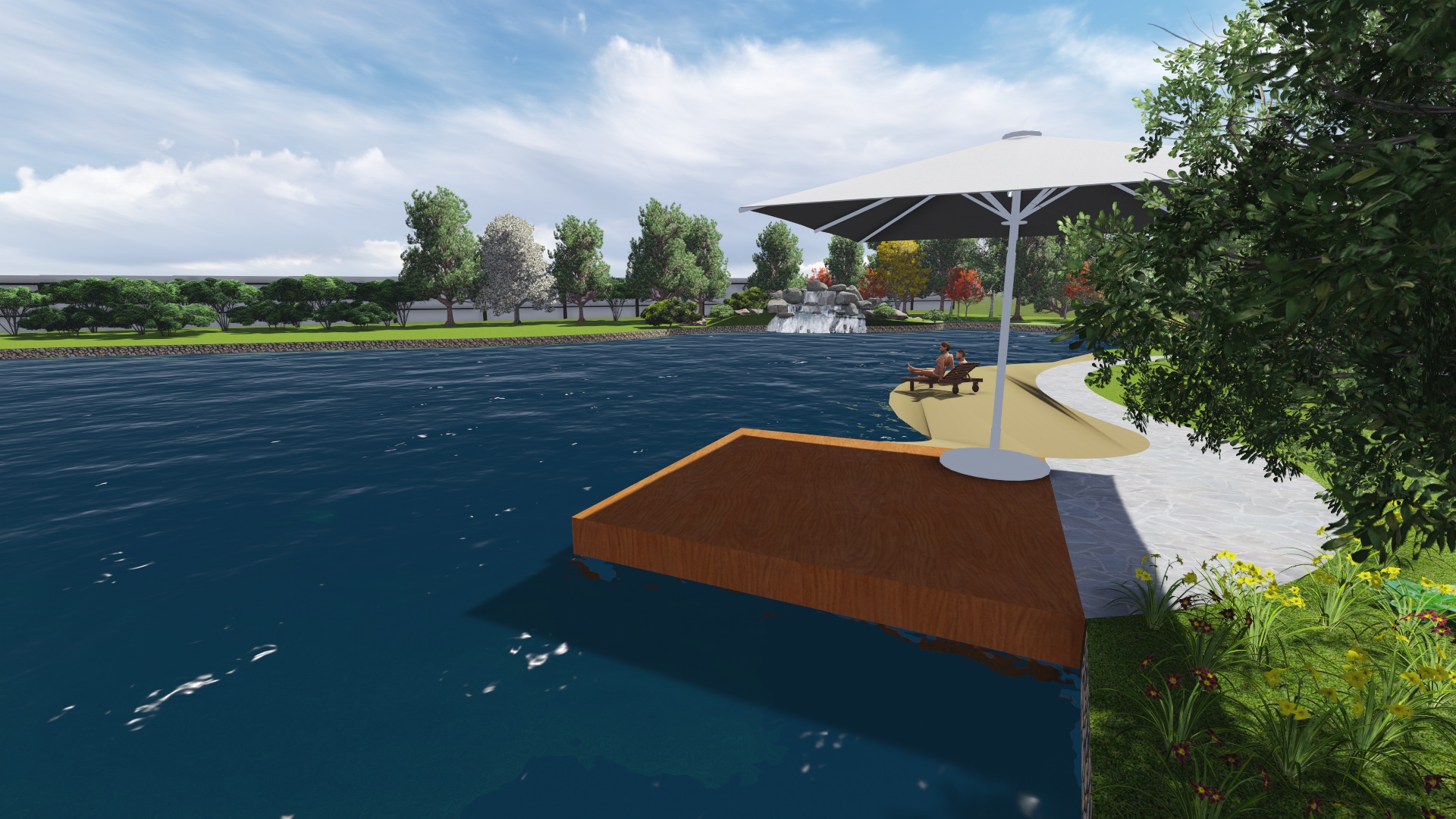 Проект расширения водной зоны с добавлением водопада , пляжной зоны, зоны для ловли рыбы придание водоему более эстетического вида за счет оформления контура пруда и оформления прибрежной зоны.