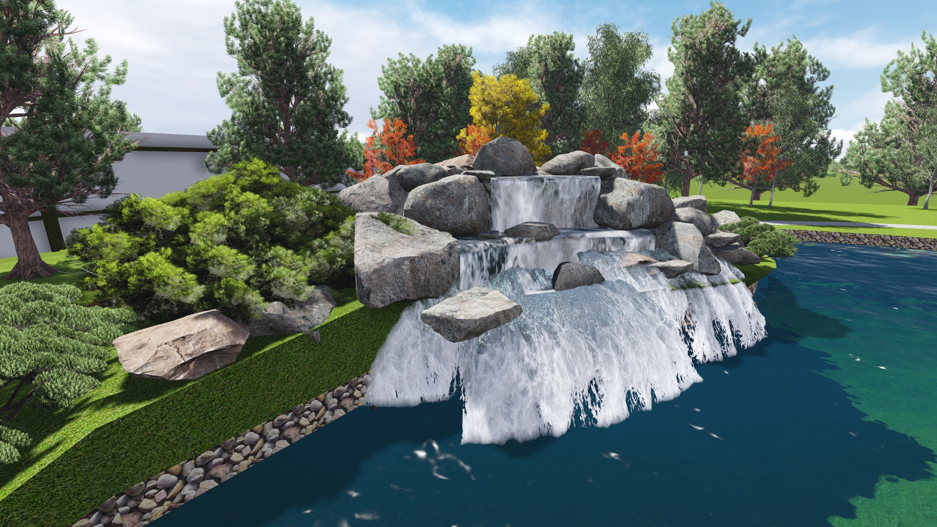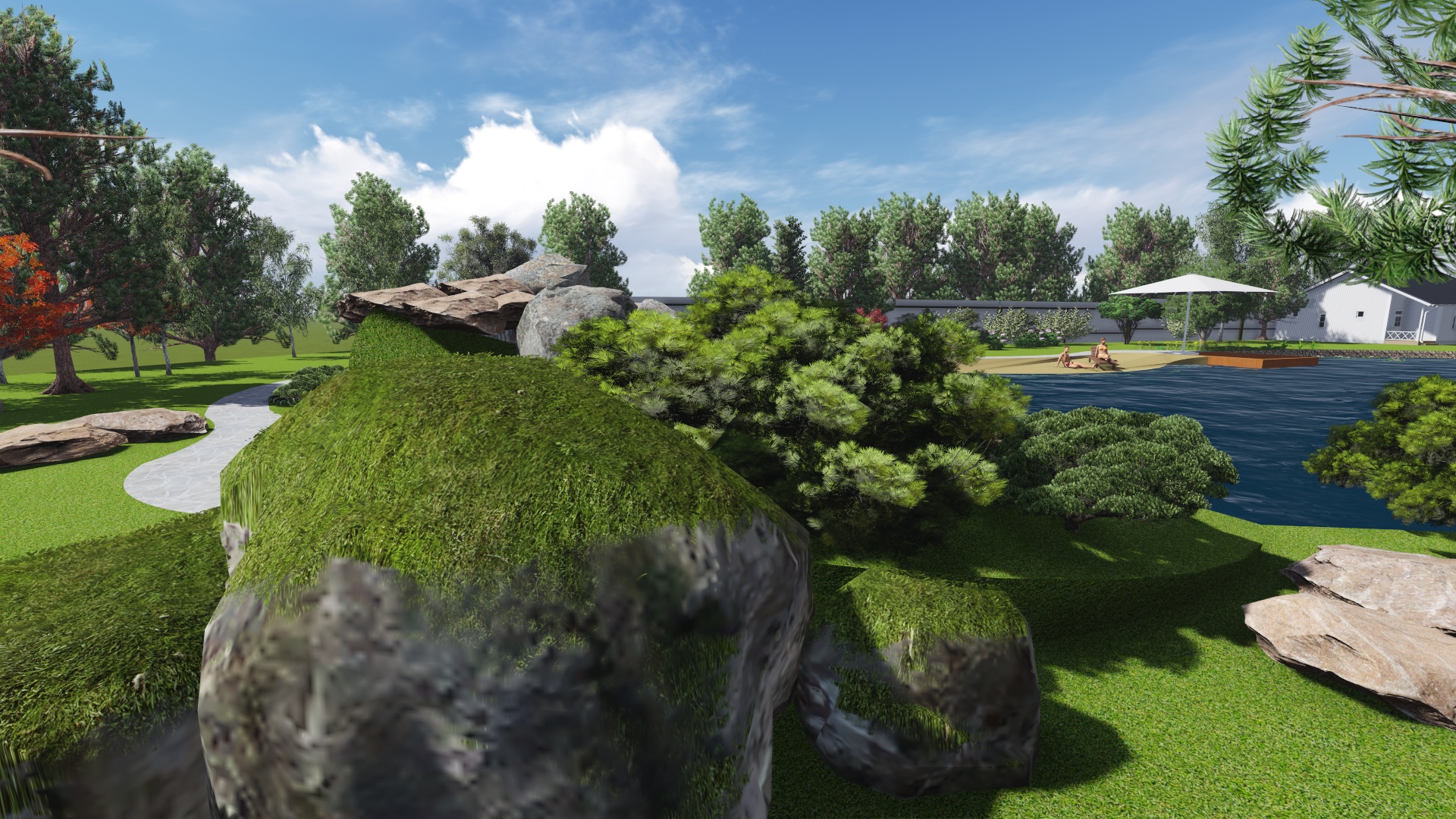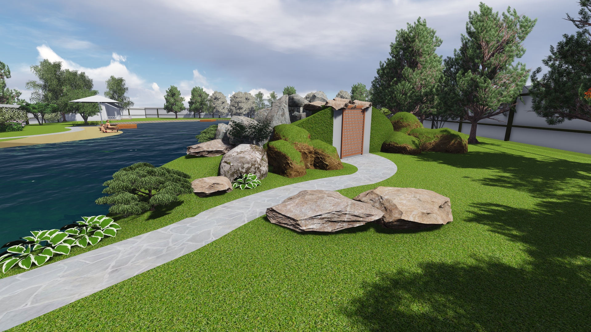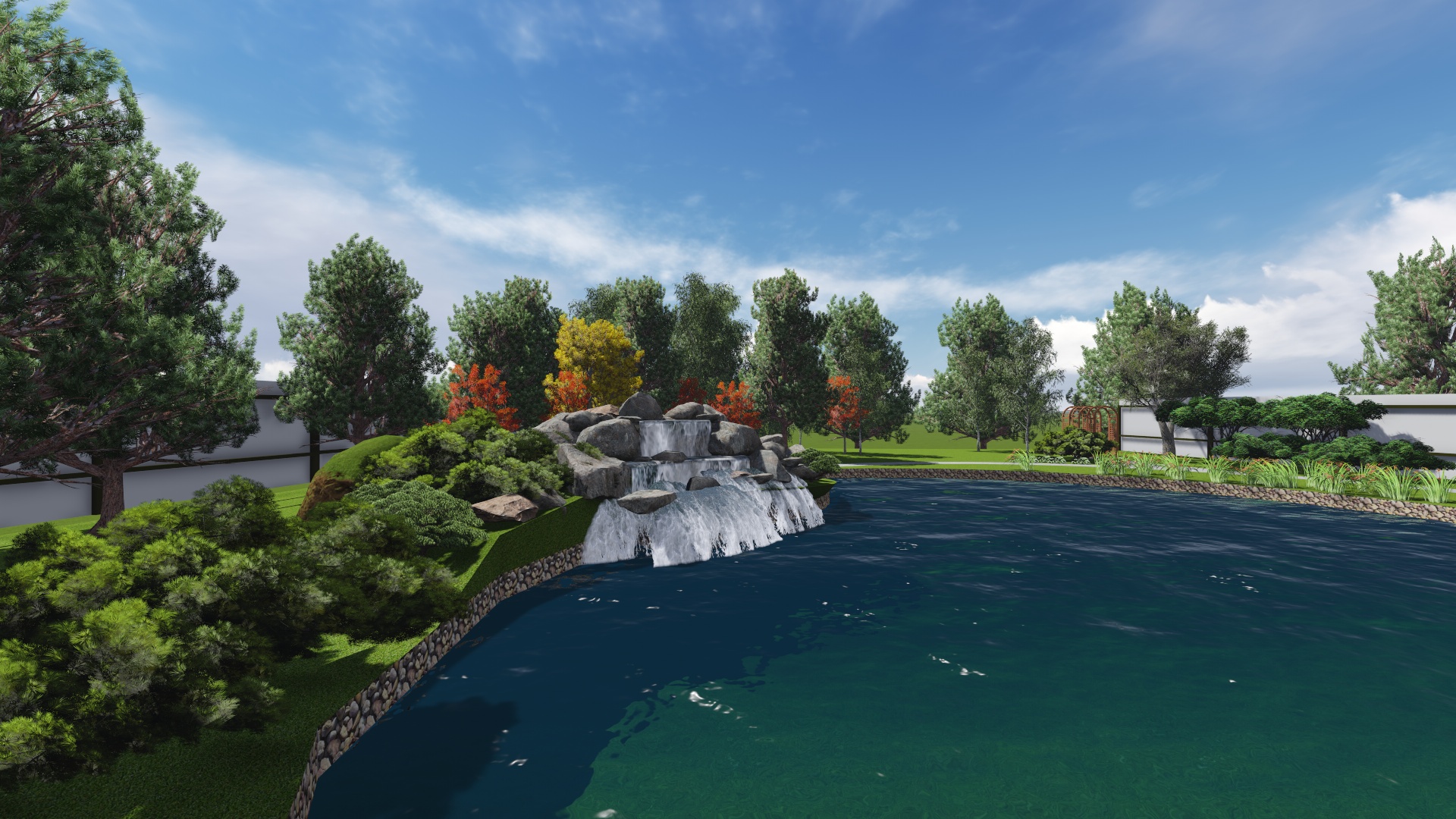 Проект расширения водной зоны с добавлением водопада , пляжной зоны, зоны для ловли рыбы придание водоему более эстетического вида за счет оформления контура пруда и оформления прибрежной зоны.